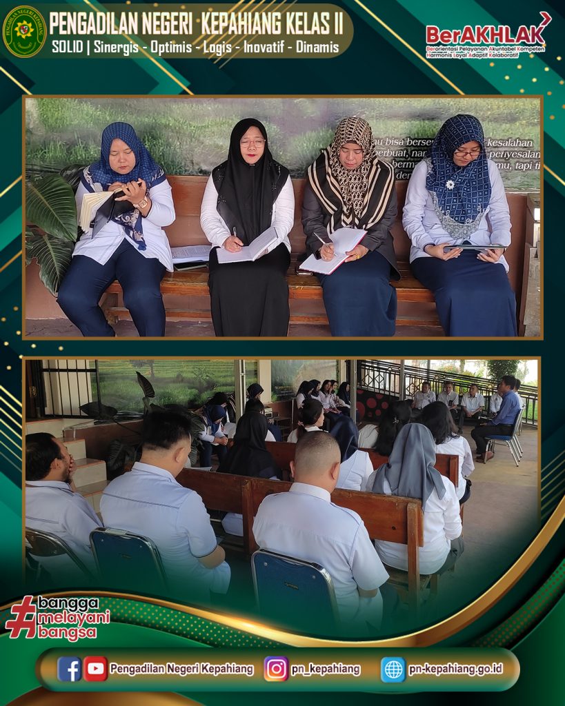 Tak lupa juga seluruh pegawai dipersilahkan berdiskusi, bertanya, atau pun memberikan solusi apabila menemukan kesulitan dalam pekerjaan, dan juga beberapa pegawai mengajukan pendapat serta inovasi untuk kemajuan Pengadilan Negeri Kepahiang.